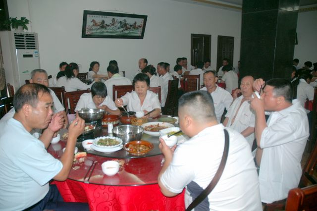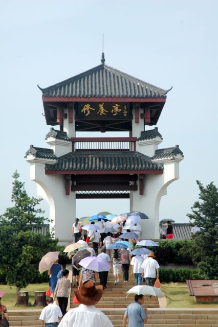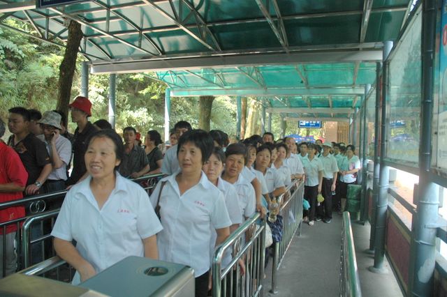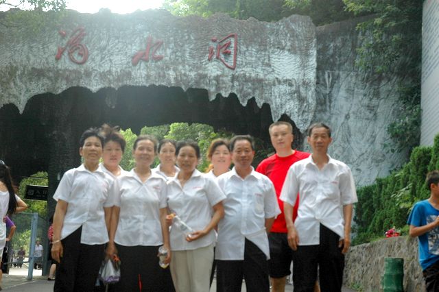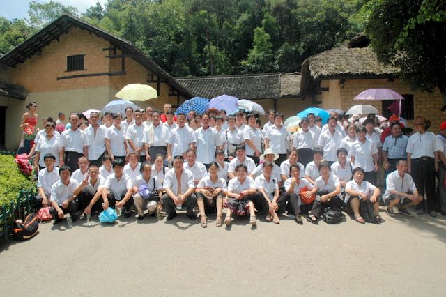 韶山的最后一站是参观滴水洞。导游介绍说,主席当年曾在滴水洞的楼里住了11个晚上,其实滴水洞也不是一个洞,而是因为毛主席当年在信中隐讳提到他在“西方的一个山洞”里住了几天,因而就叫滴水洞了。旁边的水库还是主席曾经游泳的地方呢。导游介绍各个房间,毛主席住过的,开过会的,浴室,卧室,台球厅……参观滴水洞之后,很多工人不顾天气的炎热和身体的疲劳,徒步登上600多级石阶的毛主席祖坟处参观、跪拜、祈祷,希望能沾点灵气带回家,保佑后代有出息。