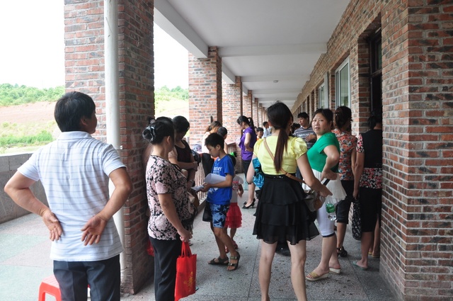 学生在考场考试,家长则在考场外焦急地等待。有的家长在考场外不停地张望,有的在教室长廊上等候,有的在教学楼旁边的空地上讨论着、询问着。望子成龙心切,家长们都希望把自己的孩子送到正源这天然氧吧,求学胜地。
