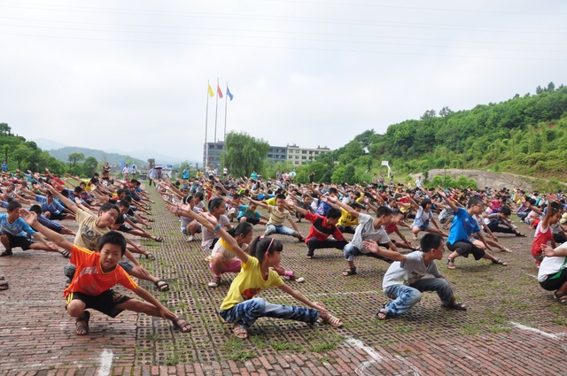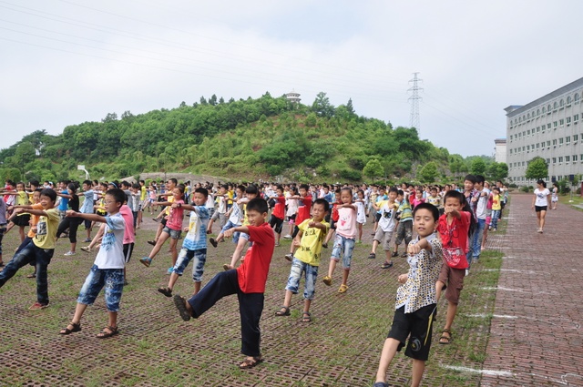最后,同学们在体育老师的指挥下,集体表演了五步拳,其动作整齐规范,赢得了现场的老师和家长交口称赞。