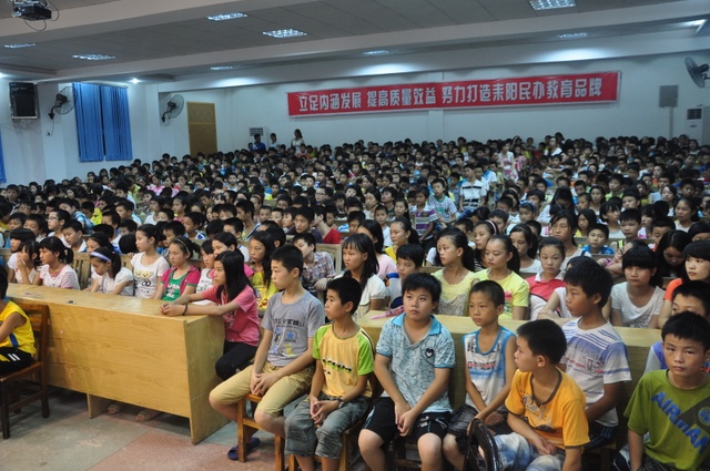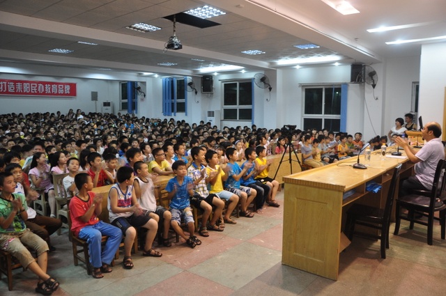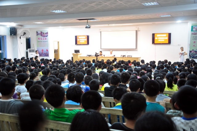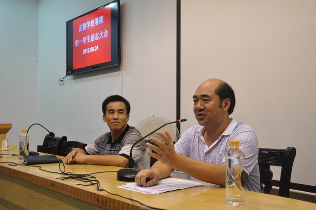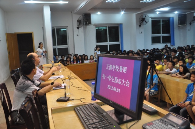 2012年8月1日,800多名参加暑期培训的初一年级新生聚集在报告厅,参加励志大会。会议由初中部副主任徐作耘主持,罗校长作主题报告。