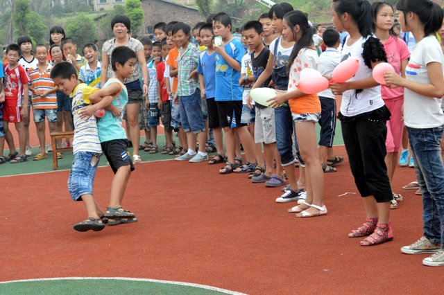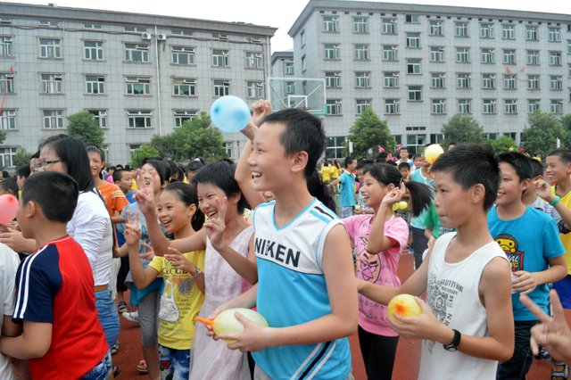 正源初一新概念英语强化培训夏令营举行双人夹气球30米往返接力比赛