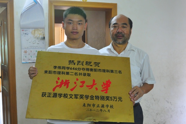 李伟是在今年的高考中以646夺得衡阳市理科第三名、耒阳市理科第二名的成绩考入浙江大学;黄伟明以629分夺得耒阳市理科第四名考入华中科技大学(本硕博连读)。