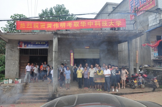 连日来,考入大学的高三学生纷纷摆设宴席,一谢师恩,8月12日,高三清华班的李伟与黄伟明分别在市区和长坪圩乡托福村(石枧圩)举行谢师宴。罗校长和夫人梁晓芬老师以及毛小波支书率部分初、高中老师赴宴并分别为李伟和黄伟明颁发了奖牌和“文军奖学金”,其中李伟获奖5万元、黄伟明获奖1万元。