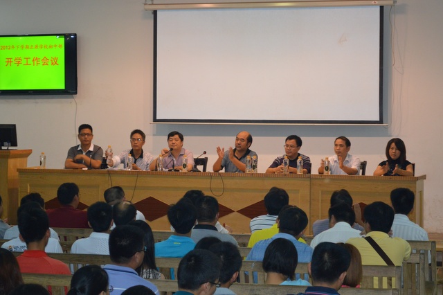 正源学校初中部开学工作会议在报告厅举行,初中部全体教师参加大会,会上,罗校长就我校取得的成绩和目前工作作了简短而精辟的讲话,并宣布了新调整的初中部领导班子成员名单。接着,初中部主任曾良古就师风师德建设提出了更高的要求,学部副主任李佐星、肖常科分别就德育工作和教学工作进行发言。