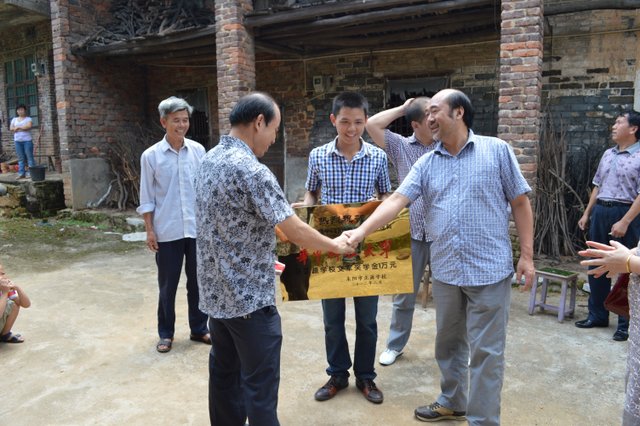 梁老师将10000元奖金交到周敏的父亲手中