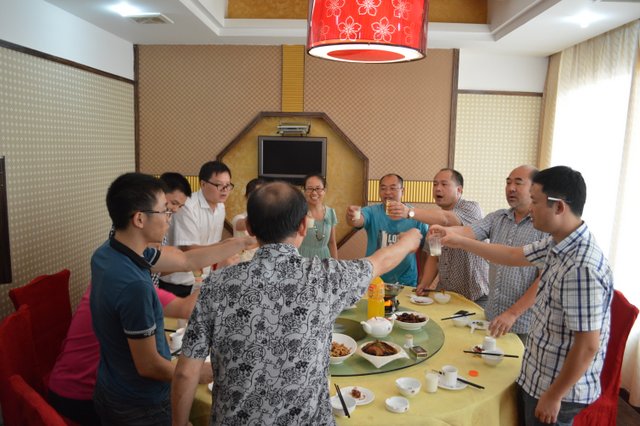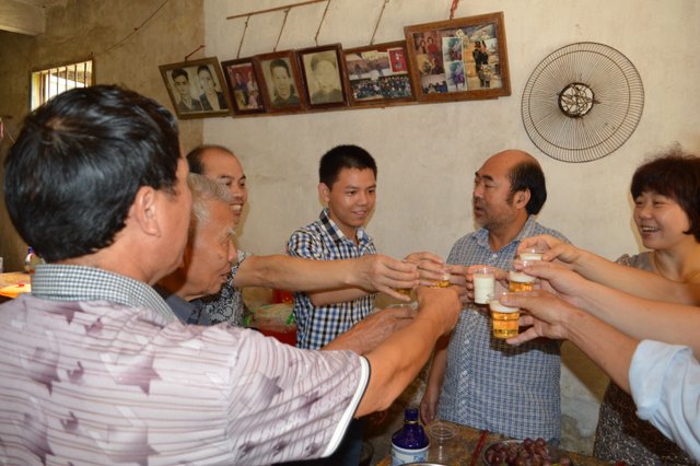 周敏父子向罗校长及正源老师敬酒致谢