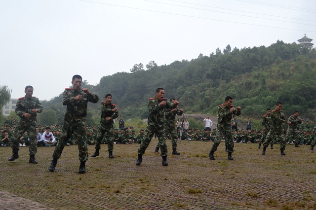 最后,军训教官们进行了精彩的表演。他们铿锵的步伐,整齐的动作博得同学们的热烈地掌声。随着教官精彩表演的结束,2012届新生军训正式拉开帷幕。