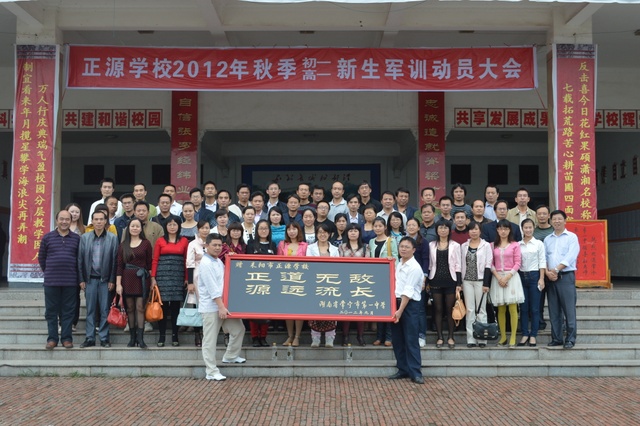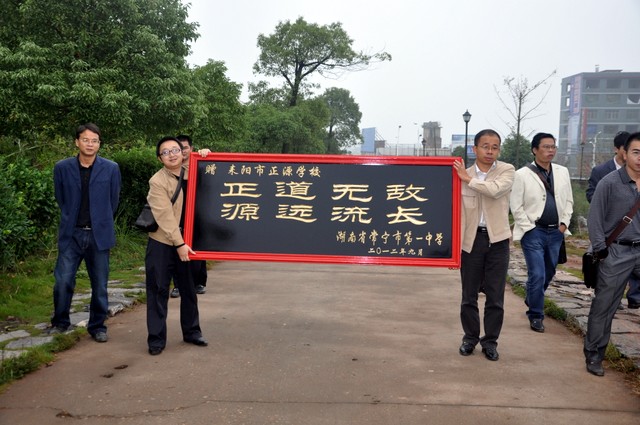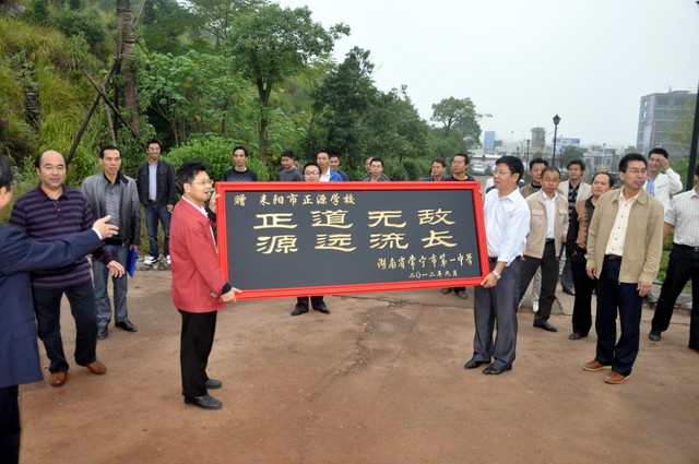 当日,常宁一中给我校赠送了牌匾,宾主还在教学楼前合影留念。