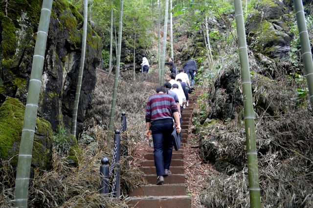 中午,在学校食堂体验正源土菜,然后,李康活主任和刘志朋老师陪同部分客人们到蔡伦竹海游览。回到市区已是华灯初上,用完晚餐之后,学校派车将客人们送回常宁。