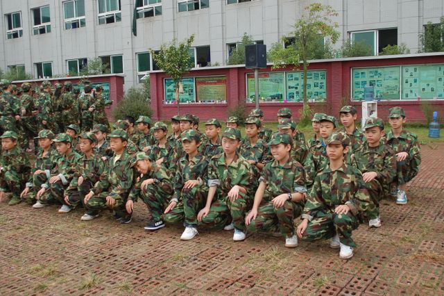 今天是军训的第二天,各个训练场上可以看到一队队、一列列英姿飒爽的“小战士”。初一、高一2300多名新生在驻耒126师376团教官们的要求指导下,正在接受严格的训练。