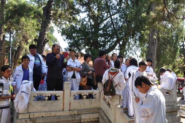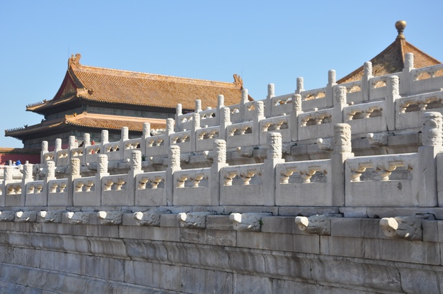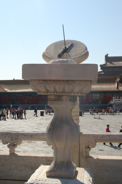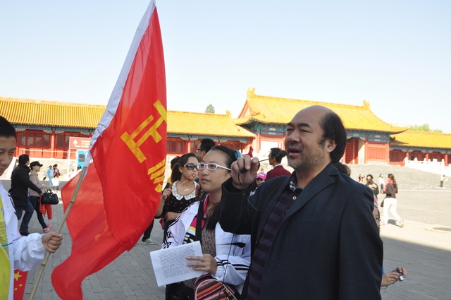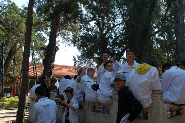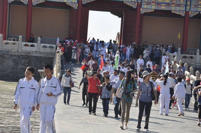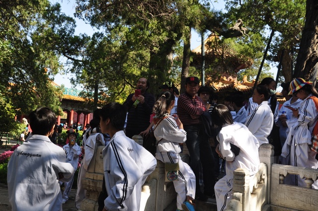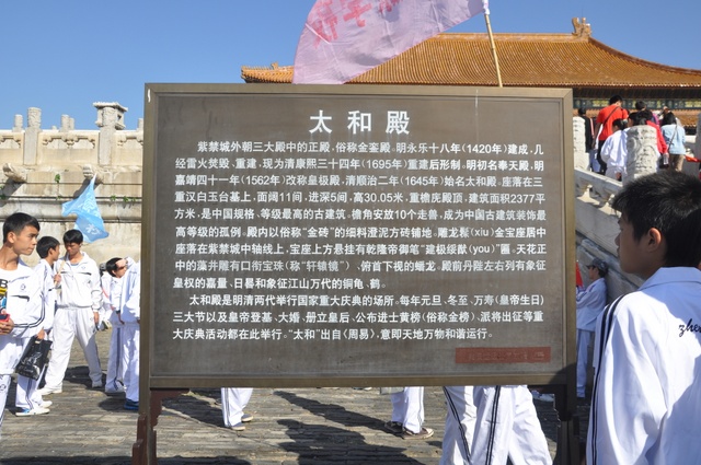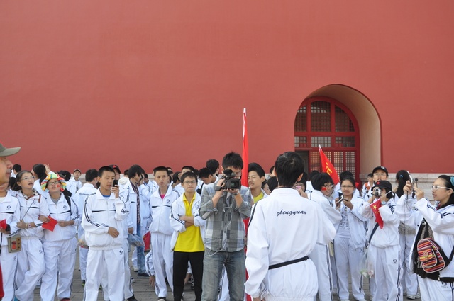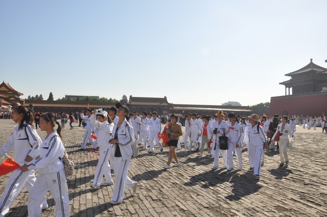 今天,观看升国旗之后,由于天安门广场上午将有国事,我们只得从王府井绕道从东门进入故宫,参观之前,学生导游对故宫进行了简单介绍,在太和殿前面的广场,分班拍摄了合影。然后,自由参观。