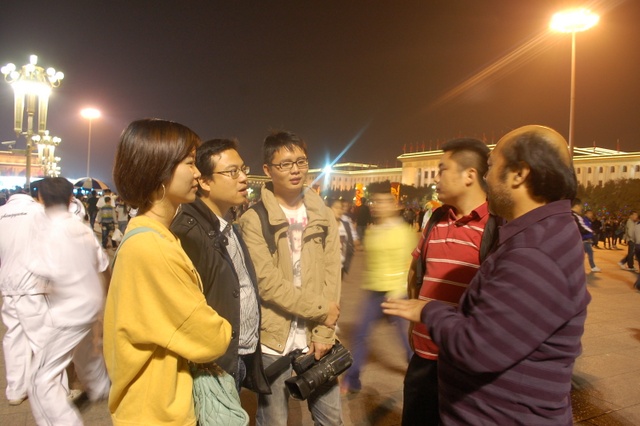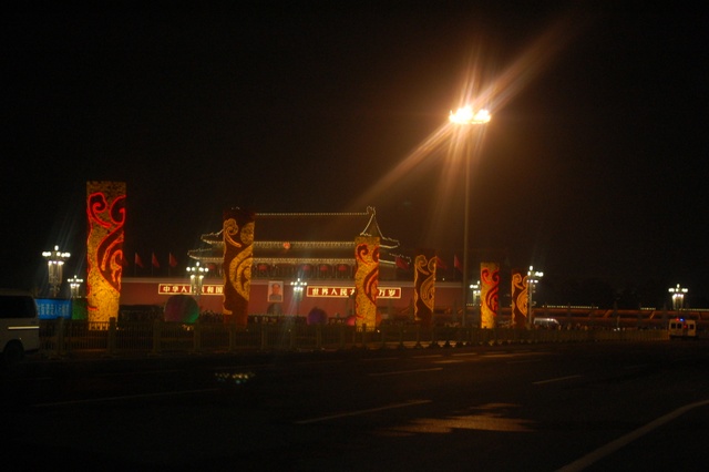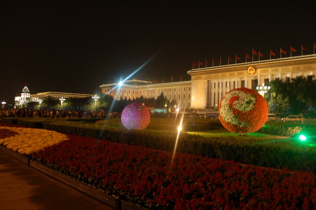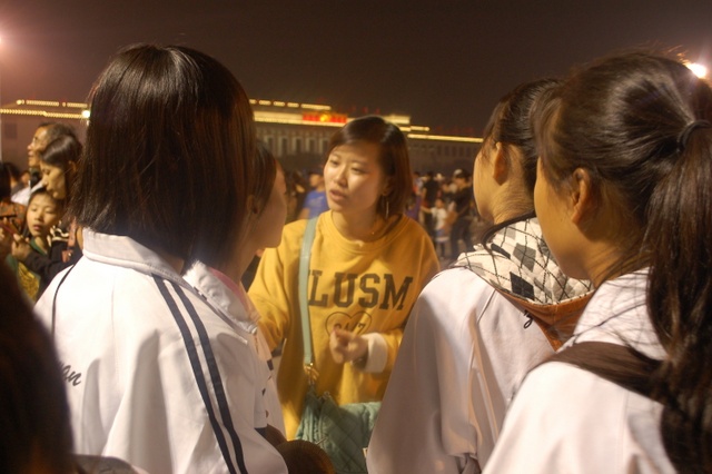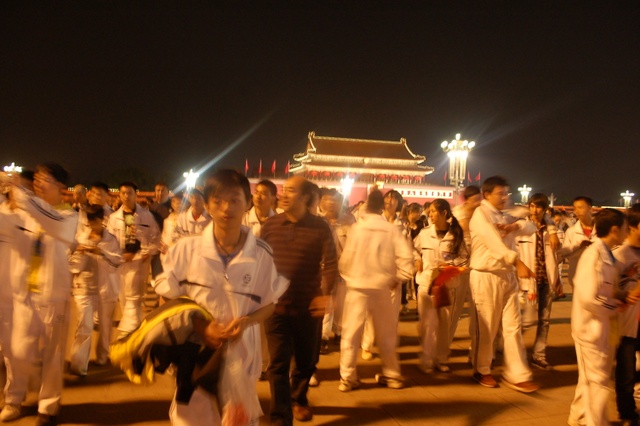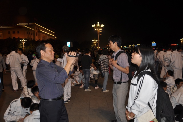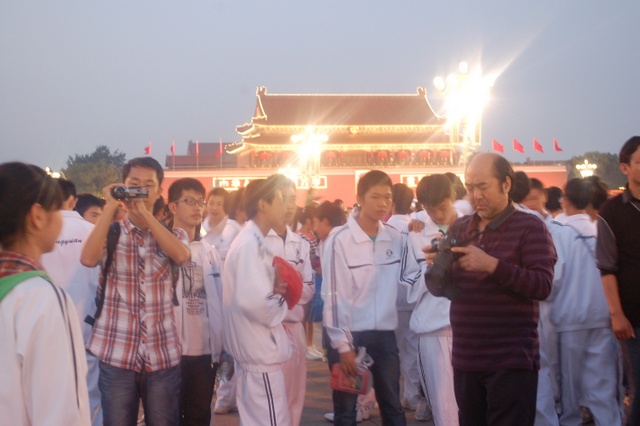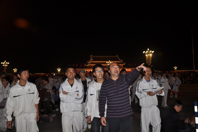 今年的10月1日,是我们伟大的祖国成立六十三周年生日,当日清晨,师生们挤在天安门城楼东面的长安路上的人群中观看了升旗仪式。上午,天安门广场有国事活动不开放,直到下午,师生们才走进天安门广场参观游览,节日里的天安门,花团锦簇,游人如潮,好容易才挤出一小块场地以天安门城楼为背景拍摄了大合影,之后,又为每个学生拍摄了单人照。到了晚上天安门更是流光溢彩、格外迷人,游览了三个多小时的同学们迟迟不舍得离开。