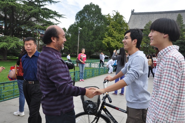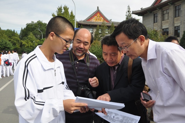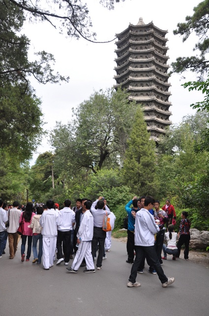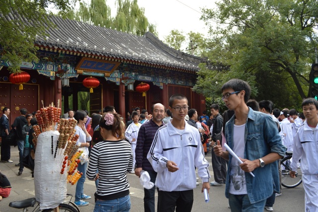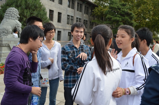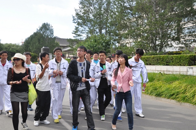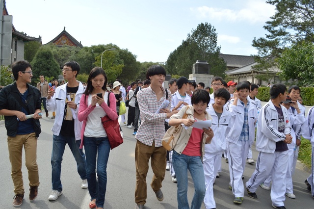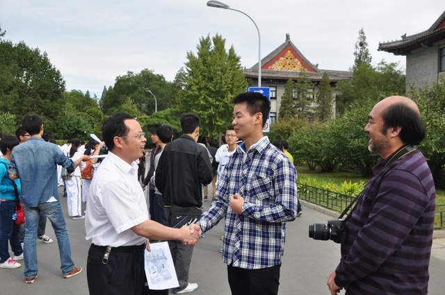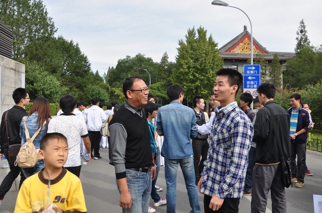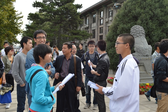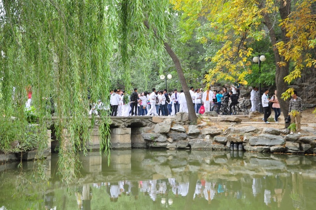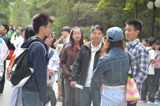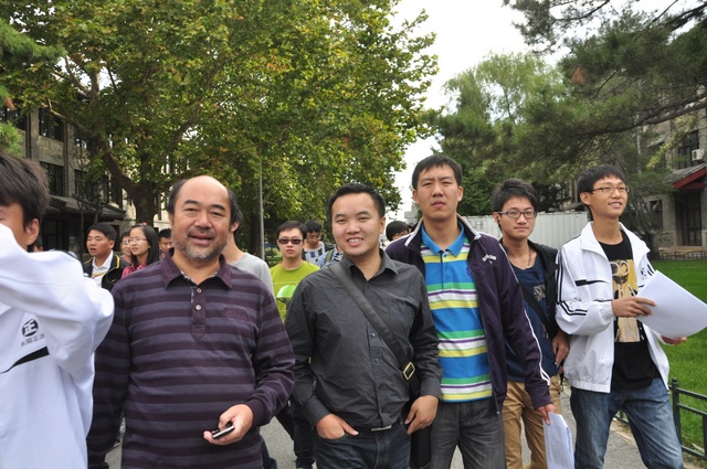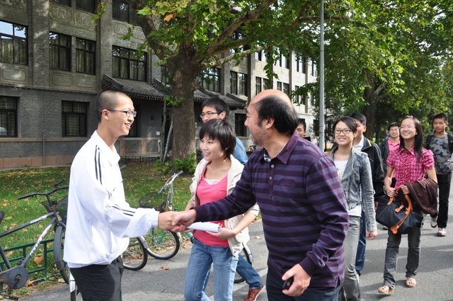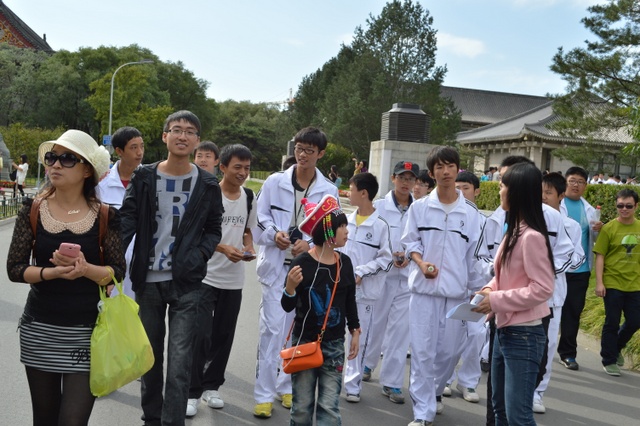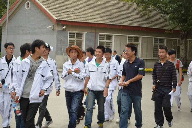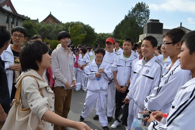 10月3日,同学们走进了励志之旅的核心区域。上午9点,当同学们来到北京大学,今年从正源考入北大的潘军早就在门口迎接大家,大队人马径直走到北大图书馆前面,不一会,30多个在京各高校的耒阳籍学长陆续而至,拍完大合影,同学们分成10多个小组在学长们的引领下,经过博雅塔然后漫步在未名湖畔,与学长们进行直面交流与探讨,边走边说,学长们耐心解答同学们提出的各种疑惑,并用自己的体会告诉同学们学习方法,其中如今年从正源考入北京理工大学的如杨云龙,那份热情,那份激情,还有那份才智让同学们钦佩不已;交流中,每一个小组有说有笑,气氛活跃。当日,绿树掩映、碧波荡漾的未名湖,让众多穿着白色校服的正源人点缀得风光无限,更加充满生机与活力。