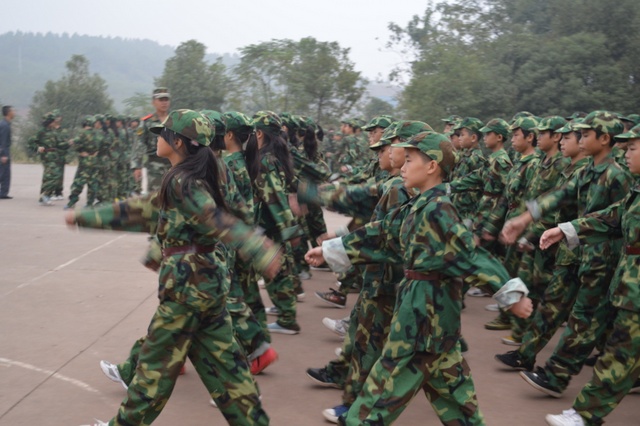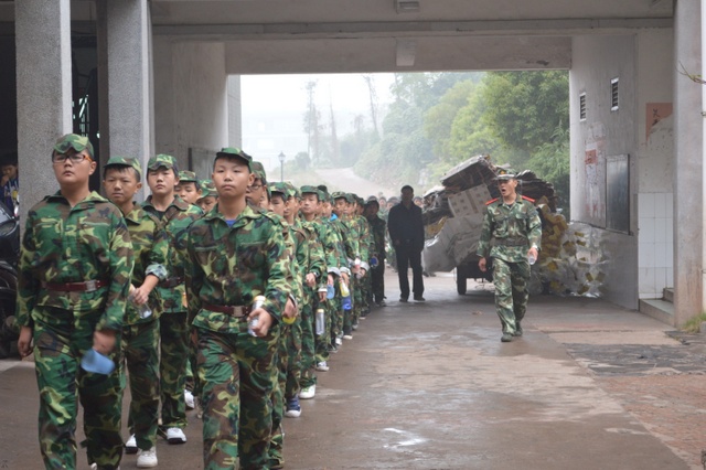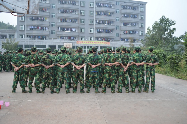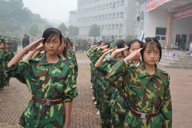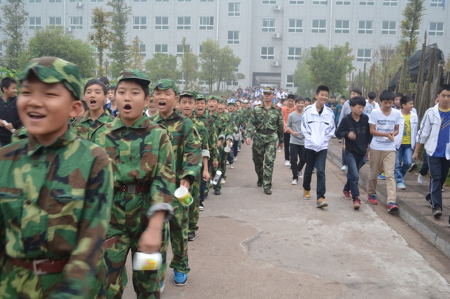 初一年级新生也毫不示弱。每个教官针对学生身心特点,一遍一遍复习巩固所训内容,一遍一遍反复讲述示范新训内容。他们既有细节的分解动作训练,又有整体的连贯训练。教官的耐心、细致、严格的训练,让初一的小战士逐步成长。同学们从最初对迷彩服的好奇与憧憬,到如今的对迷彩服的爱护与珍惜,更是体现了军训对他们的神奇“蜕变”。迷彩服已成为他们这些天的全部,晨练时就已齐刷刷地穿好。有些同学担心晨练迟到,甚至晚上着装而睡。同学们以前就餐时一窝蜂地冲、抢、挤,如今却能整整齐齐排队呼号就餐了。