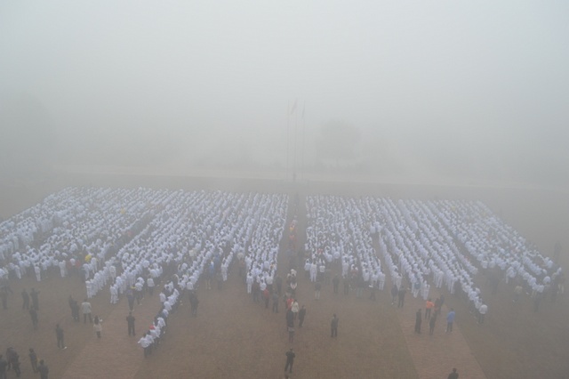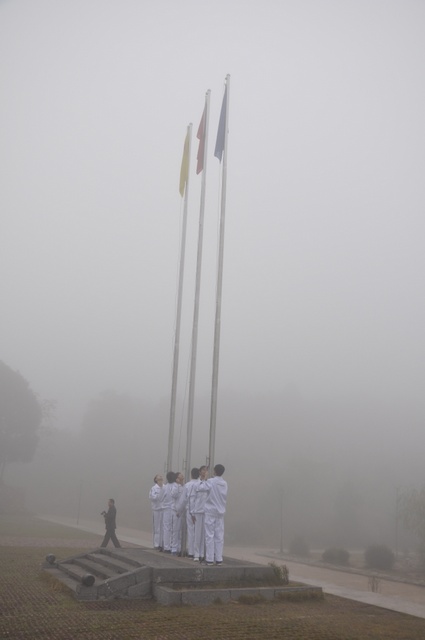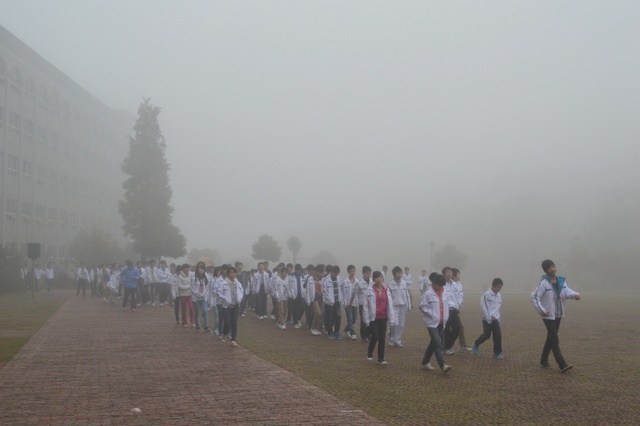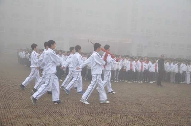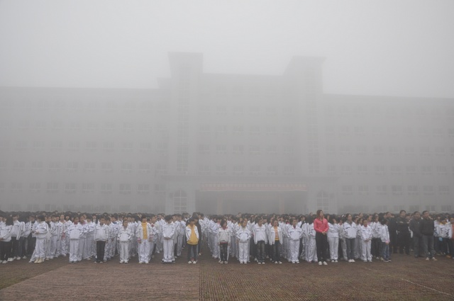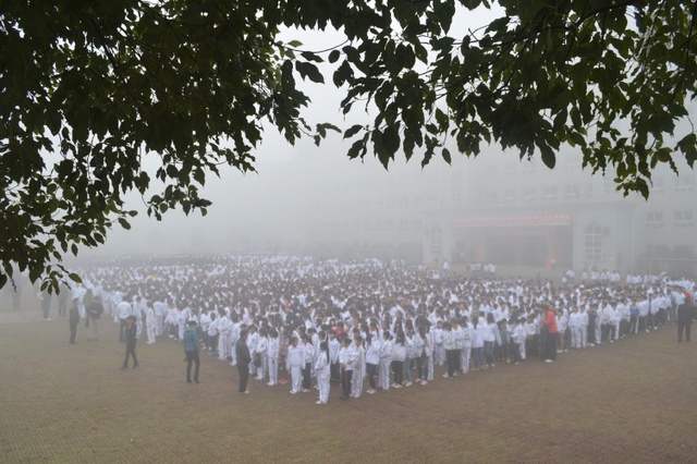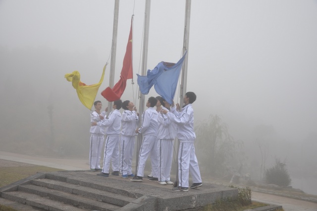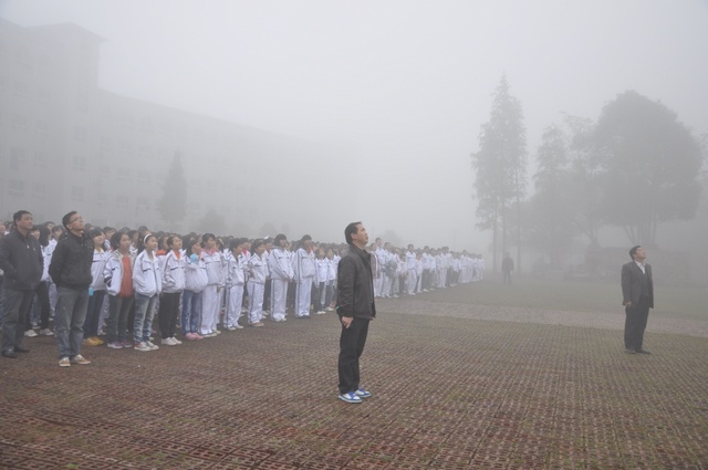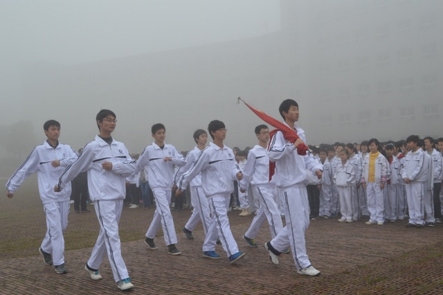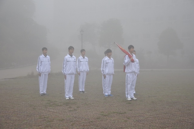 11月19日清晨,整个校园一片雾蒙蒙的景象,仿如仙境般,初中部3000多名师生云集在学校广场,举行升国旗仪式。初一年级主任俆作耘在国旗台下讲话,讲话的主题为《什么是成功》,他举了很多发生在他班级的例子。徐主任告诉同学们从他所教班级毕业生里面成功的人士往往是那些曾经担任过班干部的同学,因为班干部都会自己控制自己的行为,提倡同学们要学会自律,做一名守纪律的学生,并印制好了《成功宝典》给各班级作为班会学习的主题活动。