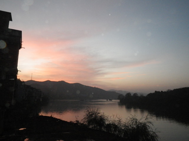 晚餐在黄市的一家小餐馆,这是餐馆小阳台的风景——夕阳红