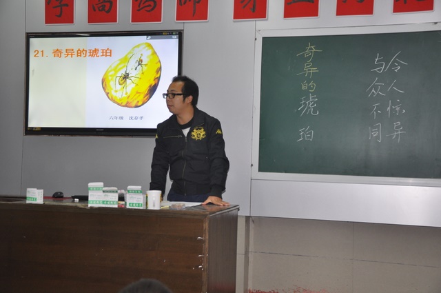 小学部语文组青年教师教学比武活动继续进行。12月3日第一节晚自习,六年级沈存孝老师在小学部会议室上了一堂语文教学比武课——《奇异的琥珀》。课堂上,老师时而组织学生运用多种形式读课文,时而引导学生积极讨论问题,时而鼓励学生上台进行精彩的表演。同学们在轻松愉快的氛围中体验到了学习语文的乐趣。小学部全体语文老师及学部领导到场听课。