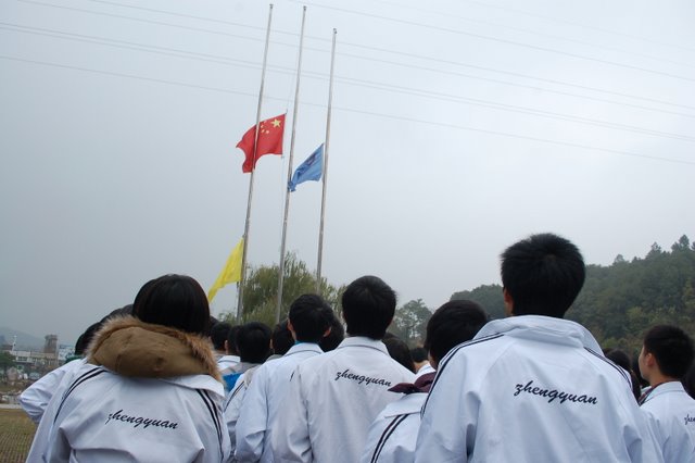 2012年11月3日上午第一节课之前,高中部全体学生云集在学校广场参加升国旗仪式,德育处主任王伟荣以《热爱祖国,从我做起》为题发表国旗下的讲话。在讲话中列举一许多事例,倡导同学们爱国要从自我做起,从身边的小事做起。