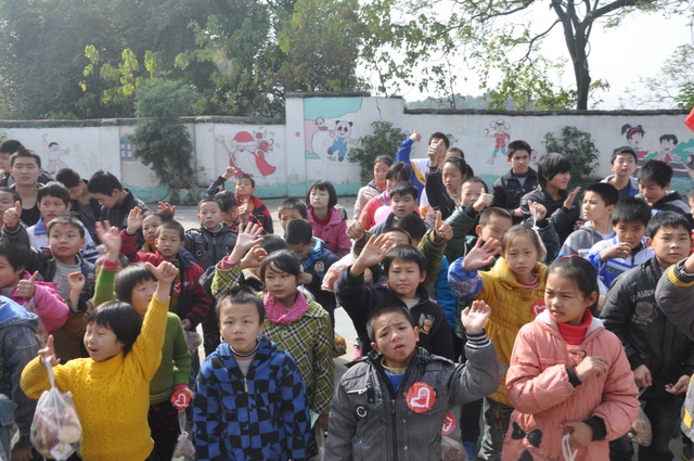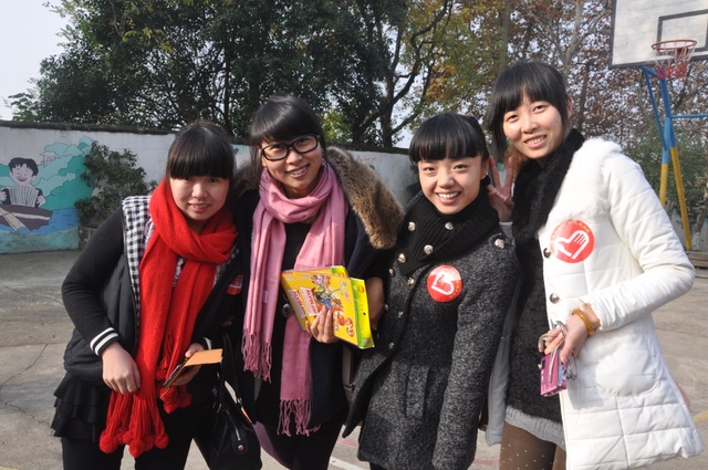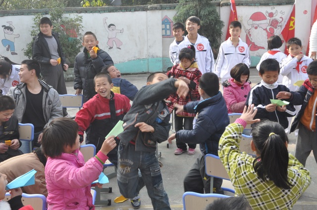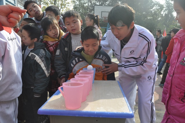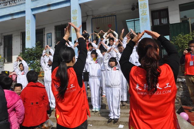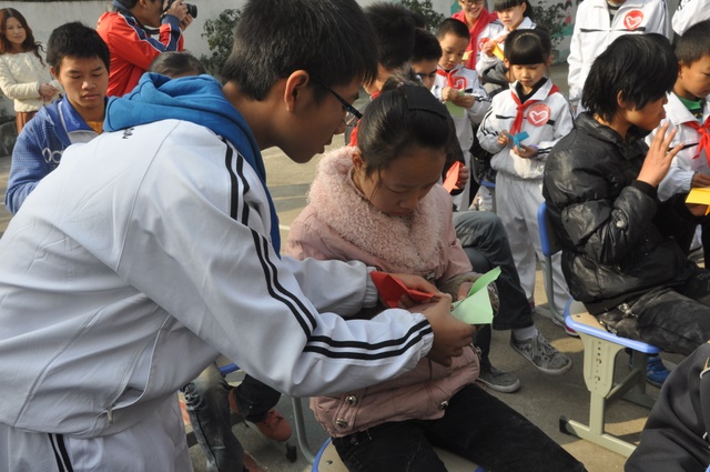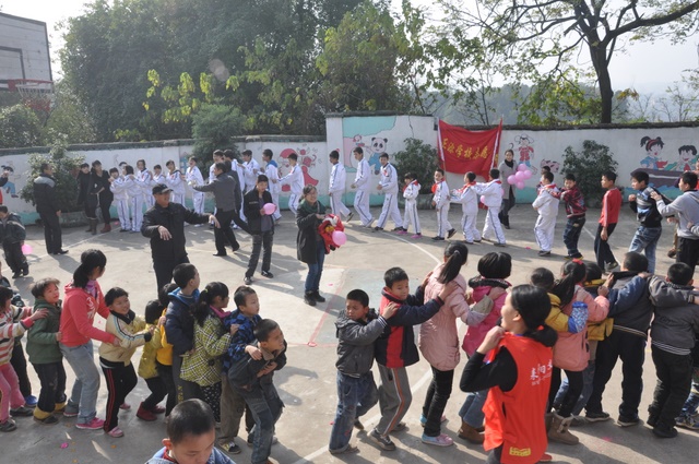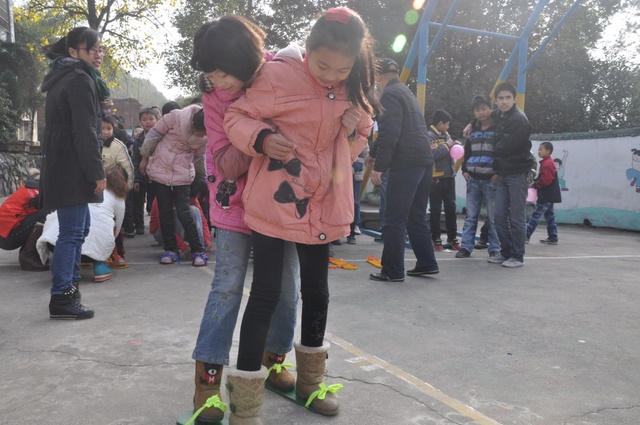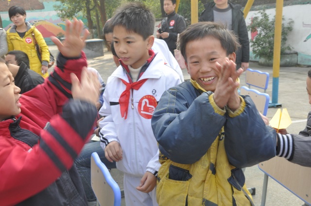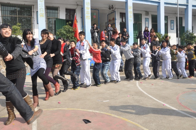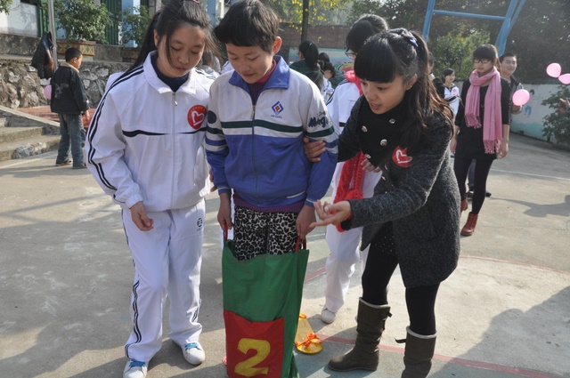 一进校门,聋哑学校的那些孩子们显得异常兴奋,大声呼喊着打招呼。我们整好队后,首先听取了该校伍校长的介绍。我们得知,市聋哑学校创办于1993年,克服了没有稳定校园等困难,目前仍招有86个孩子。伍校长高度评价了我校的爱心行动,对我校每年上万元的爱心捐款感激不尽。接着,我校师生在李丰老师的组织下,按照事先设计的活动方案,组织我校师生和聋哑学校的学生进行互动。折纸、齐心向前走、袋鼠跳跳跳、金球水上漂等一个个有趣的游戏,我们手把手地教,拉近了我校师生和聋哑学校学生的距离。那些孩子们经过自己的努力,在游戏中获得了成功,得到了奖品显得兴高采烈,活蹦乱跳。我校师生带领他们齐跳兔子舞更是把活动推向高潮。