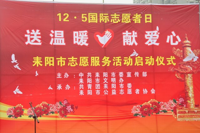 为纪念第27个世界志愿者服务日,弘扬志愿精神,耒阳市市委宣传部、耒阳市文明办在发明家广场举行耒阳市志愿服务启动仪式,我校志愿者服务队应邀参加。12月4日上午7点30分,我校初一200多名志愿者身着洁白的校服在国旗下集会,他们举着醒目的宣传横幅,带着扫把、桶、铁夹子等劳动工具,准备用自己的实际行动参与志愿服务活动。