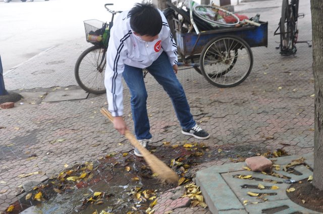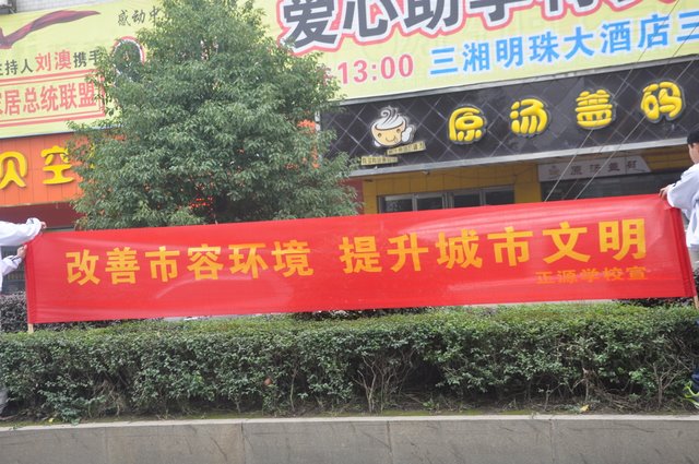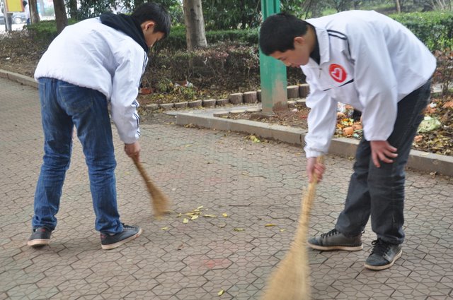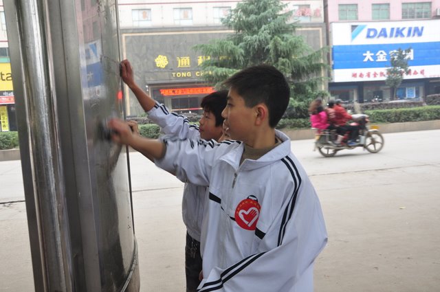 启动仪式结束后,我们的志愿者服务队乘校车来到了神农广场,开始了义务清扫活动。志愿者们有的弯下腰用铁夹子捡起街道上的垃圾,一个烟头、一张废纸、一个塑料瓶都是他们的目标;有的清理起电线杆上和公交站牌上的小广告;还有的清扫起广场旁的街道……大家不怕苦、不怕累、不怕脏,经过一个多小时的劳动,广场面貌焕然一新,大家心中有说不出的成就感。