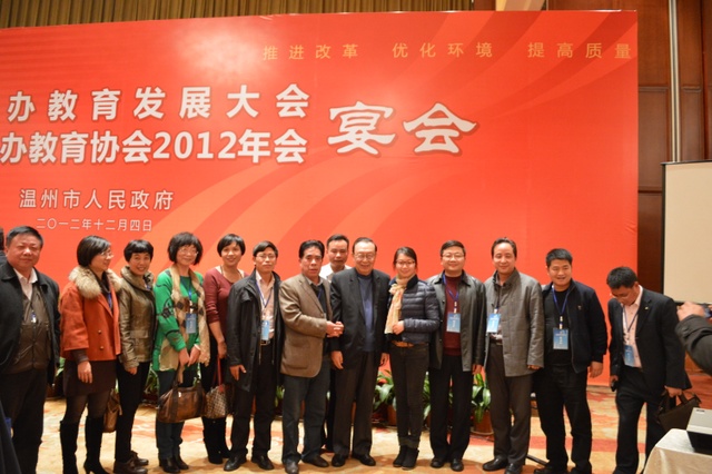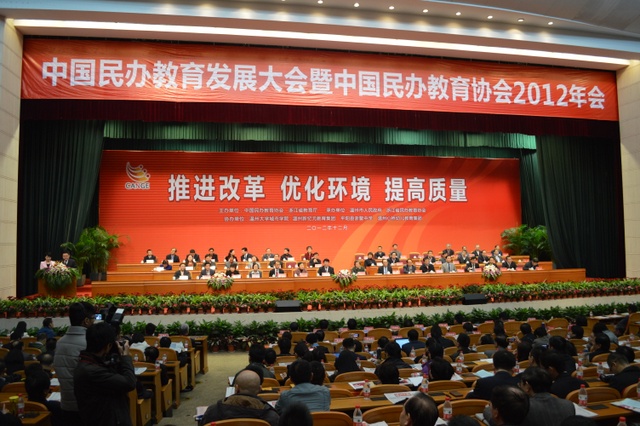 2012年12月3—5日,以“推进改革,优化环境,提高质量”为主题的中国民办教育发展大会暨中国民办教育协会2012年年会在浙江省温州市召开。大会由中国民办教育协会、浙江省教育厅主办,温州市人民政府、浙江省民办教育协会承办。全国政协副主席张榕明出席大会并作重要讲话。中国民办教育协会名誉会长陶西平,全国人大常委、民进中央副主席、中国民办教育协会会长王佐书,中共浙江省委常委、温州市委书记陈德荣,浙江省人民政府副省长郑继伟、教育部发展规划司司长谢焕忠、教育部综合改革司司长宋德民等领导出席会议。全国人大常委会严隽琪副委员长、周铁农副委员长、教育部袁贵仁部长分别发了贺信。全国20多个省、市、自治区共700余名代表参加会议。其中湖南代表出30余人,正源学校校长罗湘云和培训部罗老师出席了这次大会。