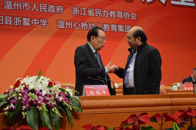 罗校长与中国民办教育协会名誉会长陶西平亲切交谈