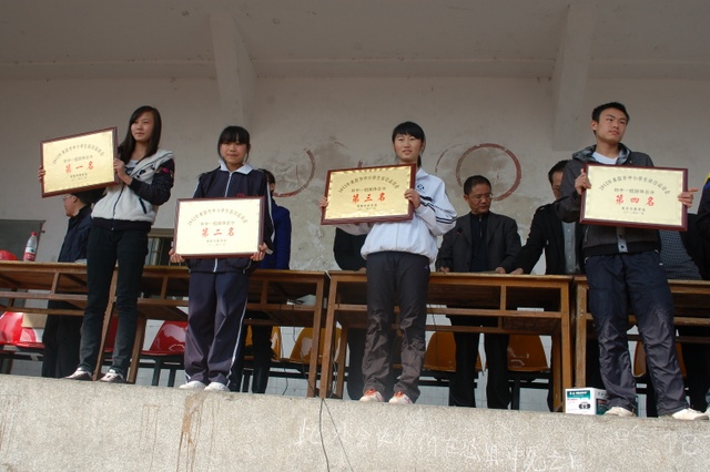 2012年12月4-7日,耒阳市2012年中小学生田径运动会在耒阳二中举行。全市各中小学共千余名运动员参加了这次运动会,我校派出24名学生组成的代表队参加比赛,其中初中部12人,小学部12人。在比赛中,正源选手发扬敢打敢拚、敢为人先的正源精神,以熟练的技巧和顽强的毅力挑战对手,同时也是挑战自己,取得了可喜成绩。其中初中部代表队夺得这次运动会初中一组团体总分第三名。在男子110米跨栏比赛中,邓先广夺得第一名,曾志卫夺得第三名;在男子组一分钟仰卧起坐比赛中周鹏获第一名、肖志威获第二名及男子100米第五名;陈军夺得男子跳高第二名;黄仔雄获得男子三级跳远第五名。谢琪在女子80米栏和100米比赛中一举夺得两个第一名;伍姝获得女子跳远第二名及跳高第四名;刘婧获得女子跳远第三名及80米栏第四名;刘群利分别获得女子铁鉼和铅球两个项目的第二名;邓凯彤分别获得了女子标枪及铁板两个第五名;王慧连获得了女子三级跳远第五名;女子4×100米接力赛第二名。