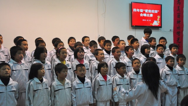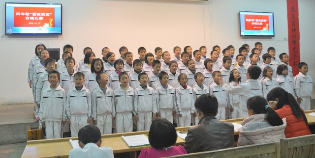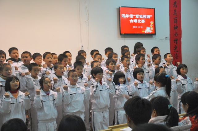 2012年12月13日晚上6:00—8:15,在正源学校报告厅,小学部四年级全体师生齐聚一堂,进行合唱比赛。赛场秩序井然,各班学生服装整齐,纷纷亮出歌喉,优美的歌声久久回荡在校园。经过激烈角逐,本次比赛结果终于揭晓,一等奖:80班、76班、123班;二等奖:75班、78班、124班、125班、72班;三等奖:74班、71班、79班、73班、77班。