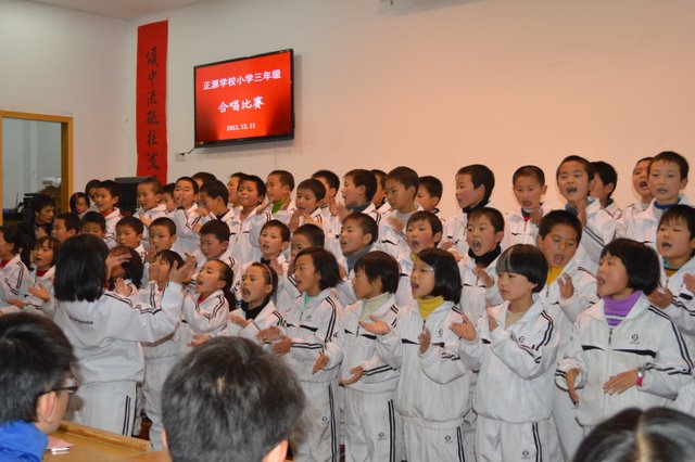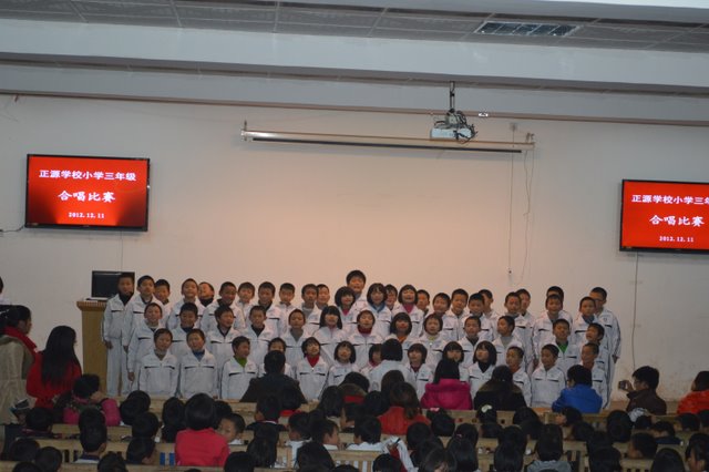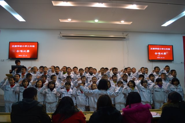 唱响旋律,歌声飞扬。2012年12月11日晚,正源学校小学部三年级合唱比赛在学校的报告厅拉开了序幕。全年级共12个班参加了本次比赛,每班必唱一首国歌,另加两首选唱歌曲。