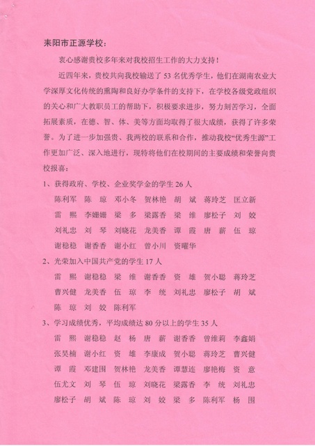 近年来,一些从正源考入高校的学生,带着母校的优良传统和师生的厚望,在大学里品学兼优,捷报频传,同时也为正源学校增光添彩。