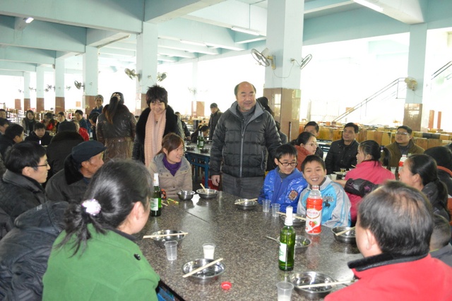 2013年元旦节,一个放假的日子,暖阳照耀下校园里显得格外宁静。当日,坚守在本职岗位上的部分员工,加之一些没有回家的外地老师和父母在外打工的留守儿童共100多人留在学校。中午,学校在一食堂为大家呈献了丰盛的午宴。罗校长和梁老师向大家送上节日的祝福并一起进餐。