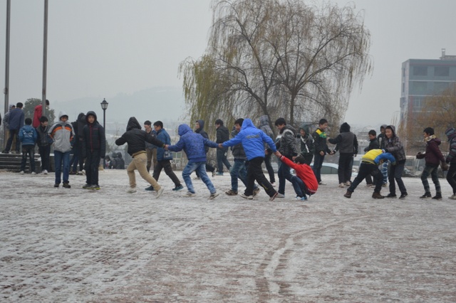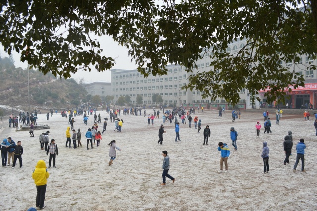 近日来,冰冻天气,给大地铺上了一层薄薄的白雪,一年里难得见到的这种景致,令孩子们兴奋不已。于是,一到下课时间,许多同学便跑到室外面的走廊、广场、运动场戏闹一番,使得洁白的校园热闹非凡,景致别样。