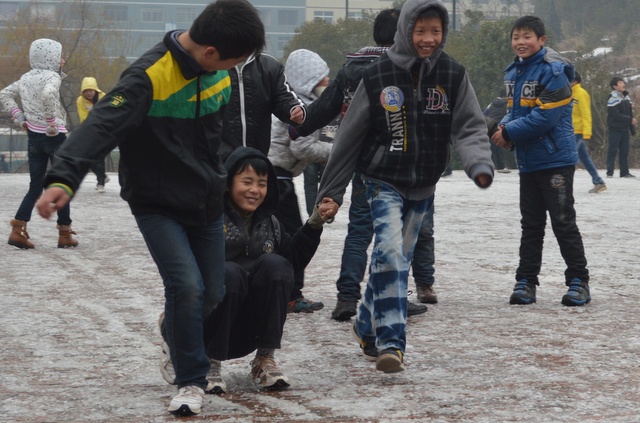 在这场冰冻气候里,为了保证同学们的安全,学校召开了专门的安全管理会议,制定了许多安全防范措施,不许爬山爬坡,不准狂追猛冲等,并在路滑陡坡地段安排了值勤人员。