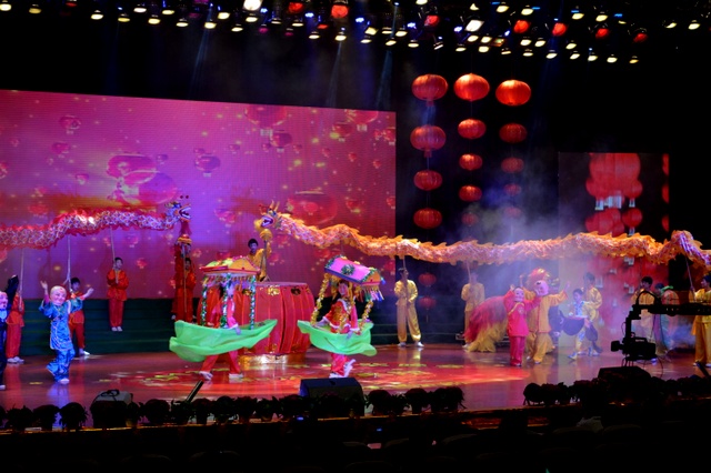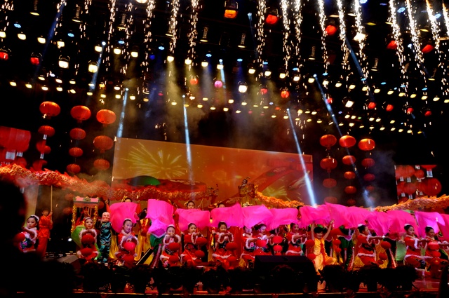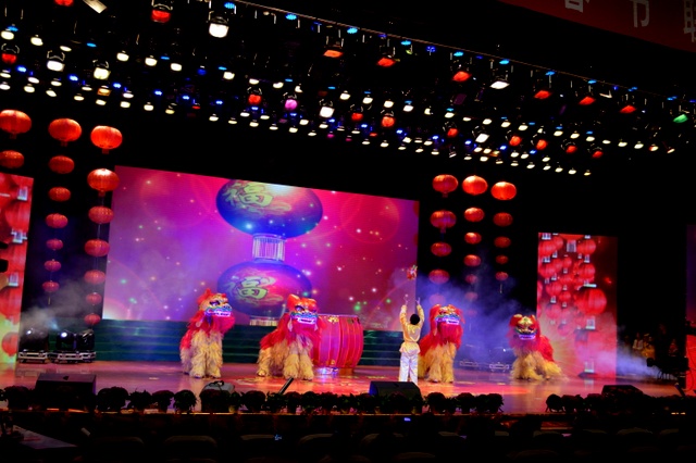 晚上七点四十六分,由正源学校96名学生表演的大型舞蹈《金蛇狂舞闹新春》拉开了晚会序幕。节目融入了较多的传统民俗元素,欢快活泼、热闹非常、流光溢彩、气势恢宏,为晚会注入更大的感染力。