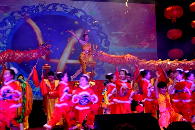 我校大型舞蹈节目《金蛇狂舞闹新春》为“和风耒阳”2013春晚开场