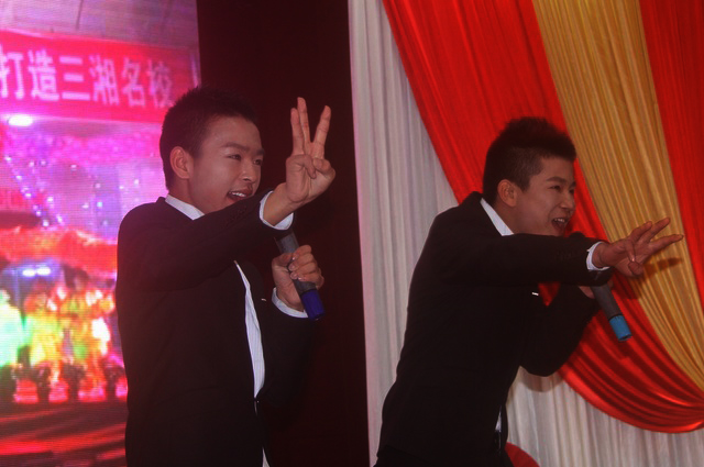 当日中午时分,活动正式开始,在线论坛老总首先致辞,接着,本次活动的协办单位代表上台致新年贺词。受罗校长委托,老席用最普通的耒阳方言代表正源学校万名师生祝各位老乡和嘉宾蛇年吉祥,宏图大展,同时也简要报告了正源学校办学成果,诚邀各位老乡常回家看看,到正源参观,并把自己的子弟送到正源快乐学习、健康成长,朴实的言语让老乡们感到亲切。