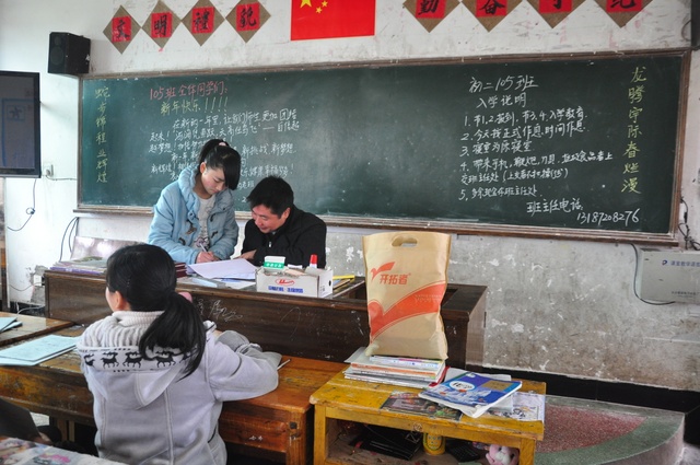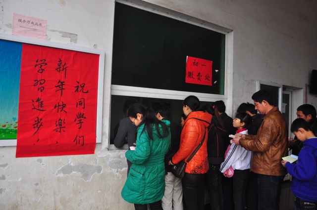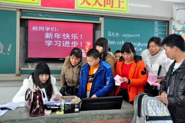 2013年2月25日,今天天气格外给力,春光无限。万多名学生在家长的陪伴下,从四面八方陆续进入学校,美丽的校园顿时又热闹起来了,同学们先到宿舍稍作安顿,便到各自的班主任处报到注册,每个教室的黑板上都写上了祝福语。