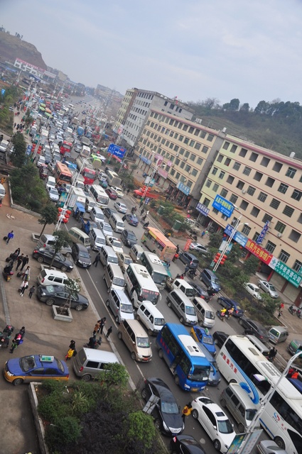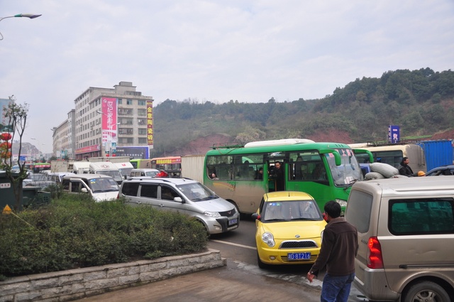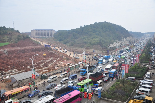当日上午,学校南面高速公路联络线上更是车水马龙,走走停停,堵车严重。