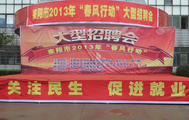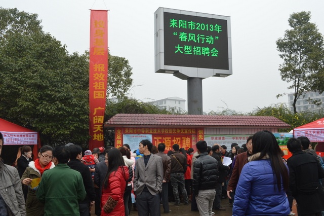 2月26日上午,耒阳市2013年“春风行动”大型招聘会在耒阳市职高举行,包括正源学校在内的140余家用人单位参加招聘,正源学校为这次招聘会提供了40多个就业岗位。当日上午,时不时下起小雨,但丝毫没有影响招聘和应聘人员的热情,现场气氛热闹非常。在正源的招聘台前,咨询和应聘人员骆驿不绝,罗校长和人事处谭主任、培训部刘主任以及在关老师在现场对应聘人员进行面试。其中,应聘校车司机还上路测试。经过面试初选有20多人将到学校进入下一步应聘程序。