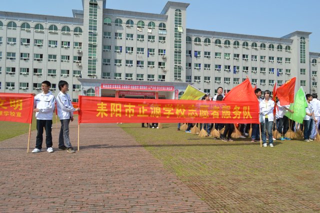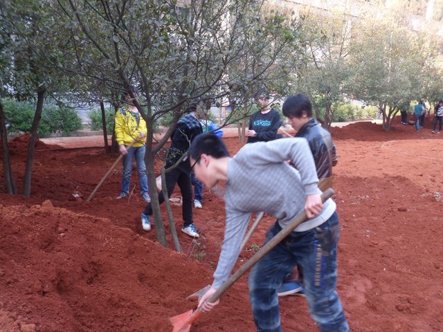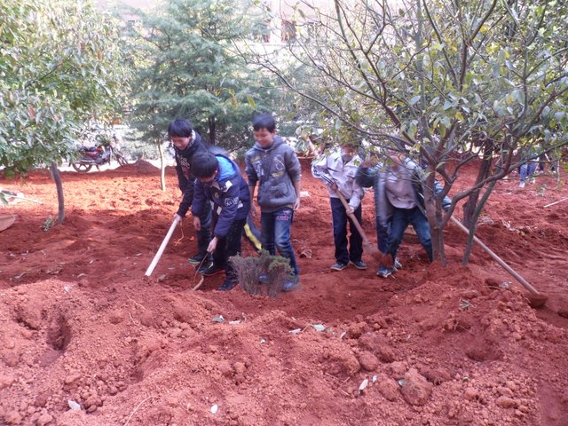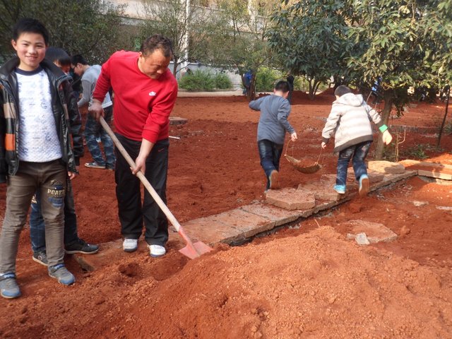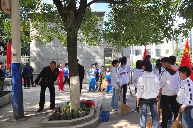 校园内,初一年级的同学们有的在西面环山跑道上认真地清扫垃圾,以保障跑道的干净畅通;有的在山上拾枯枝,以防止森林火灾;还有的在为花坛填土,个个忙得不亦乐乎。初二、初三年级的同学们则在清理宿舍后面的垃圾,个个汗流浃背,也毫无怨言。