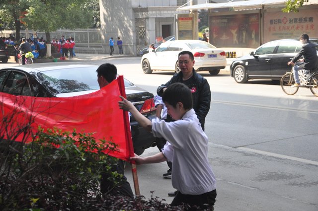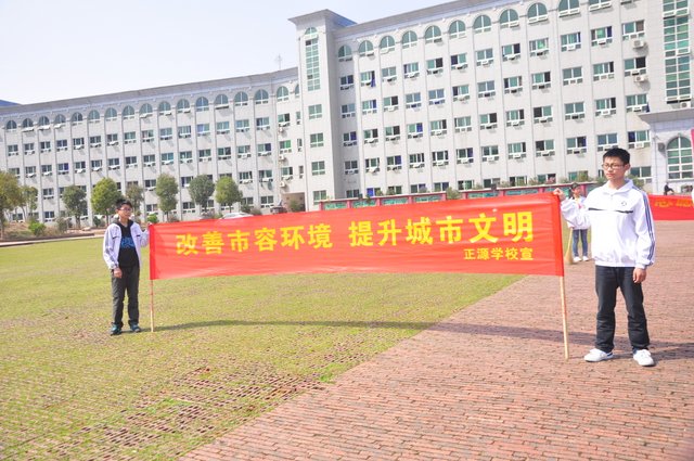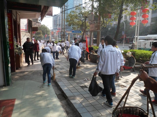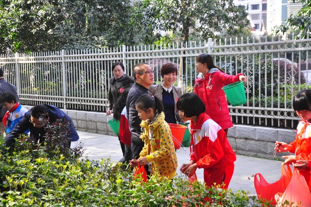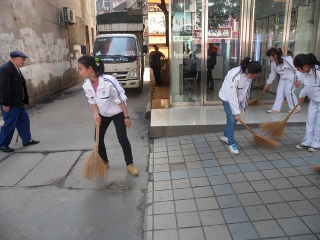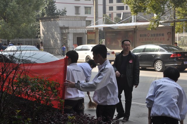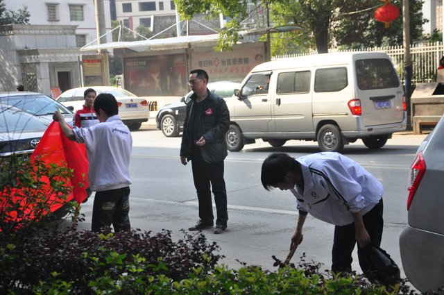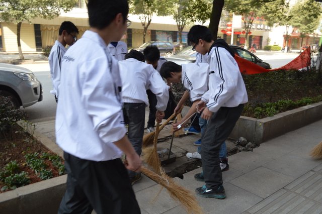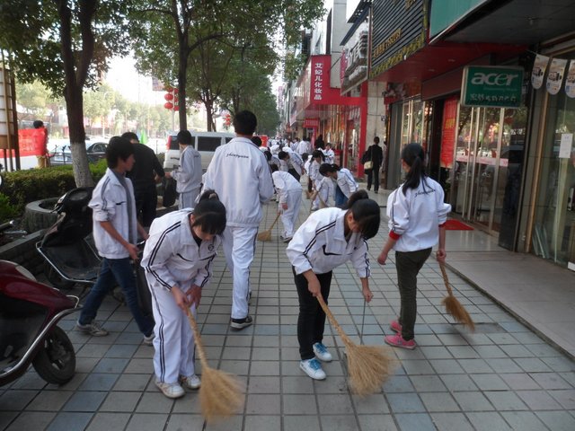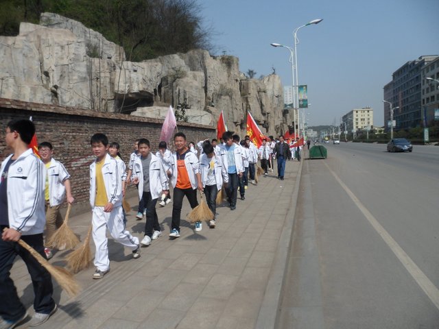 下午,准高一年级的200多名志愿者走向街头,与市领导和其他兄弟学校的志愿者一起,清扫垃圾。在市人大旁的金阳路地段,H56班的50多名志愿者与市委、市政府、团市委、市教育局等部门的领导一起认真地清扫路面垃圾,拾拣绿化带的垃圾,他们不怕脏,不怕累,为在现场一同清扫垃圾的一些小学生作了很好的榜样。而另一组来自H57、H58、H60班的志愿者们则在我市繁华的蔡伦中路和蔡伦北路地段热火朝天地干了起来。他们的义举,得到了过路百姓的啧啧称赞。