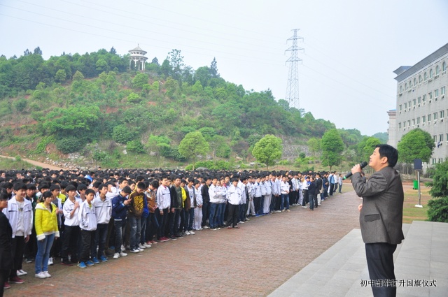 4月22日早晨,初中部全体学生在学校广场举行升国旗仪式,在升旗仪式上师生们向四川芦山地震遇难同胞默哀。并为灾区人民祈福。之后,初三年级主任唐循南发表国旗下的讲话,告诫同学们要努力学习、远离网吧,做一个有理想、有抱负的人,做一个有责任心的人、做一个对人民、对社会有用的人。初中部主任曾良古也作了讲话。
