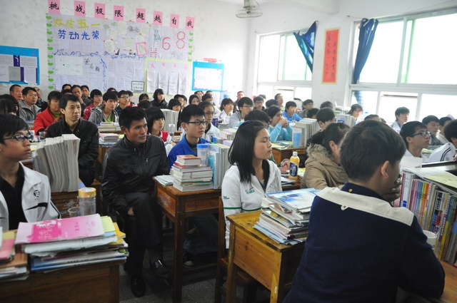 会议结束后,学生家长集中到各班教室参加班级交流会。