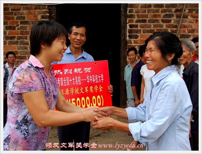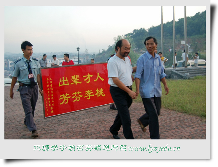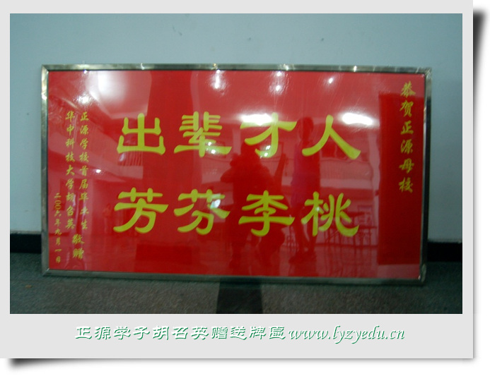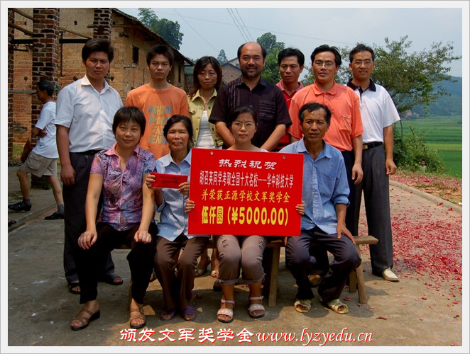 2006年正源学校高考大捷,本科二批以上上线率遥居全市第一,其中黄国虎、胡召英、梁施华三位同学分别考取全国十大名校!8月20日,校长罗湘云先生率高三部分教师赴导子乡为考取华中科技大学大学的胡召英同学表示祝贺并颁发“正源学校文军奖学金”5000元!胡召英全家对学校给予的教育和奖励表示极大的感谢!并为学校赠送了题为"人才辈出 桃李芬芳"的牌匾。