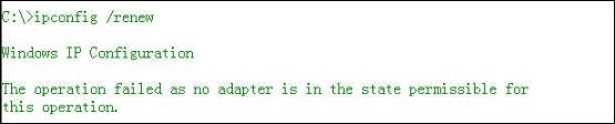 /renew [adapter] 更新所有适配器 ( 如果未指定适配器 ) ,或特定适配器 ( 如果包含了 adapter 参数 ) 的 DHCP 配置。 该参数仅在具有配置为自动获取 IP 地址的网卡的计算机上可用。要指定适配器名称,请键入使用不带参数的 IPCONFIG 命令显示的适配器名称。