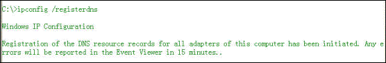 /registerdns 初始化计算机上配置的 DNS 名称和 IP 地址的手工动态注册。 可以使用该参数对失败的 DNS 名称注册进行疑难解答或解决客户和 DNS 服务器之间的动态更新问题,而不必重新启动客户计算机。 TCP/IP 协议高级属性中的 DNS 设置可以确定 DNS 中注册了哪些名称。