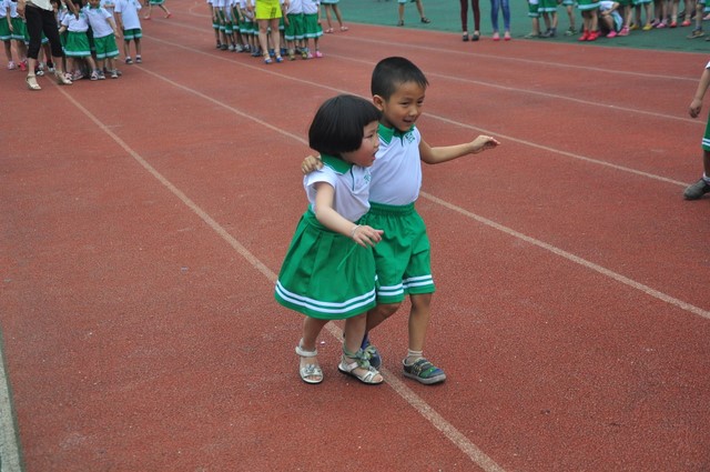 活动开场主持、开幕都是由年级主任刘欢与全体幼儿对话,胡雪丽、颜春艳老师带领全体幼儿跳舞。活动中我们用眼睛见证了赛场上的胜负,用心灵感受了幼儿的喜怒哀乐。他们的汗水洒在跑道上,浇灌着成功的花朵开放。他们的欢笑飞扬在赛场,为班争光数你最棒。跑吧,追吧!终点就在眼前,听,旁边的同学都为自己的班级呼喊着加油!加油!鼓起勇气奋力向前。摔倒了再站起来,这次活动让幼儿们学会不怕失败的勇气,学会团结合作。场上每一个点滴,都如此的震撼。