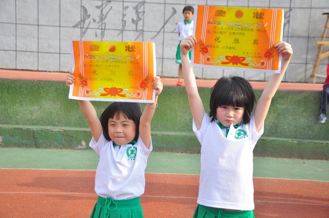 5月9日,学前班师生,满怀喜悦的心情,以精神饱满的姿态,欢聚一堂在小学部塑胶运动场上举行了以“轻舞飞扬,健康向上”为主题的两人三足户外活动。