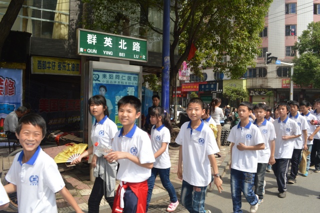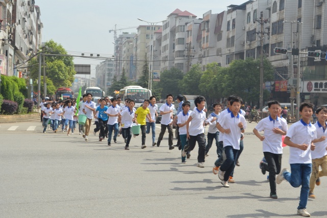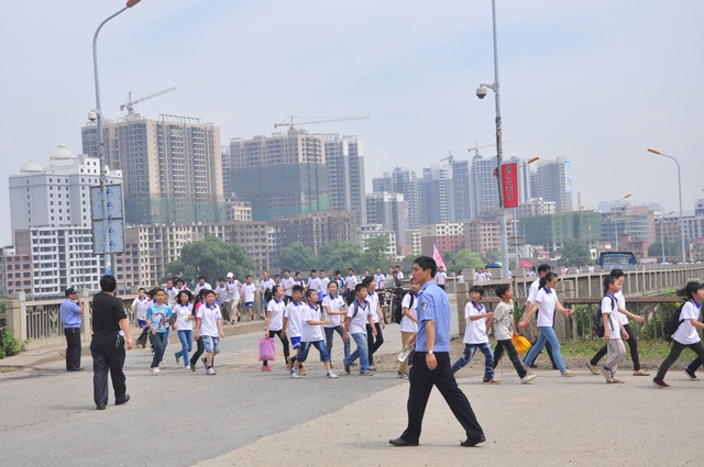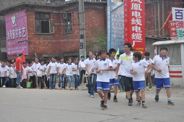早上8点,初一年级全体师生齐聚广场,校长罗湘云作了动员讲话。罗校长先向全体师生讲述了本次活动的目的、意义,再强调了整个活动中的纪律,尤其就安全问题作了全面的分析,对相关的措施作了比较全面的安排部署。活动在初一年级主任徐作耘宣布出发后正式开始。32个班级各班以两路纵队排成长长的队伍,有序地走出了校门。罗校长、初中学部主任曾良古、初一年级主任徐作耘等领导和各班班主任、跟班老师全程参,与学生一起步行24公里的路程,确保了活动安全顺利,达到了预期目的。